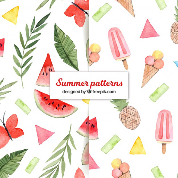 Как приятно поднимать летние темы, когда за окном солнце, а лета еще больше половины! Сегодня мы делимся с вами векторными паттернами, которые посвящены этому времени года. Вы найдете все самые яркие мотивы: арбузы, море, мороженое, солнечные очки и многое другое!