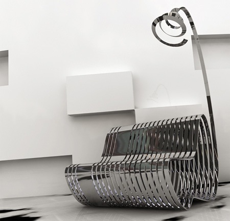 Этот диван полностью изготовлен из зеркального алюминия. Этот диван можно использовать не только как место для отдыха, но и как объект весьма провокационного в дизайне любого интерьера.