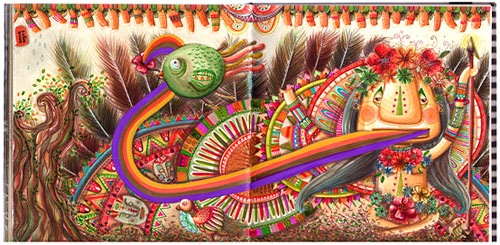 Ян создает чрезвычайно сложные иллюстрации, используя массу геометрических фигур. Таким образом он придает форму своим работам.
