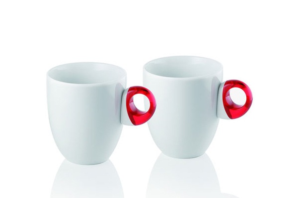 Эти классические керамические белые кружки, выглядят более стильно благодаря чудным красным ручкам, сделанным из пластмассы.