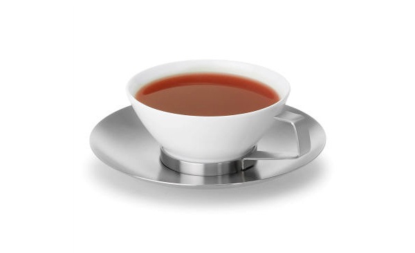 Потрясающая стильная чашка из нержавеющей стали и фарфора. Набор из такой чашки и блюдца выглядит очень современно и стильно.