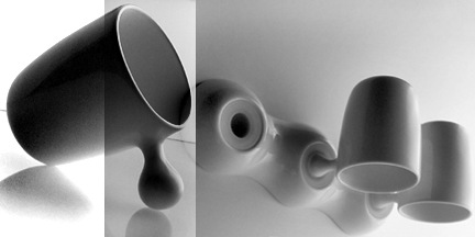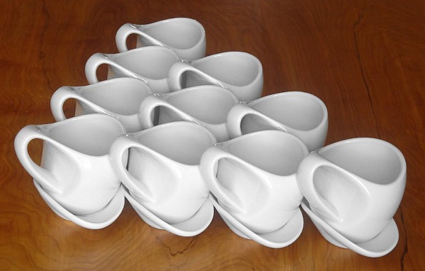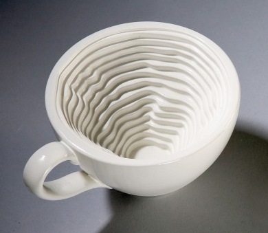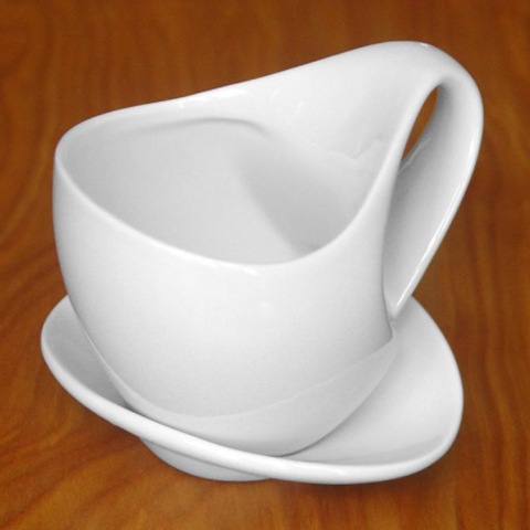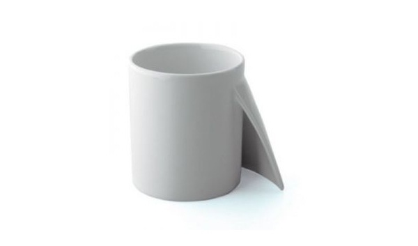 Эта чашка очень необычная по форме. Дизайн для нее создал Давид Пьер. Такая форма, по его мнению не только имеет красивый внешний вид, но и улучшенный функционал. Для баланса чашки, во время ее использования, в ее формах учитываются не только физиологические формы рук и рта, но и вес и объем жидкости, которые могут содержатся.