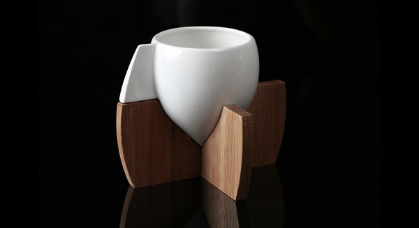 Эта чашка сделана из фаянса, ее необычное блодце, исполняющее функцию подставки, из дерева. Простой и элегантный набор для современной жизни.
