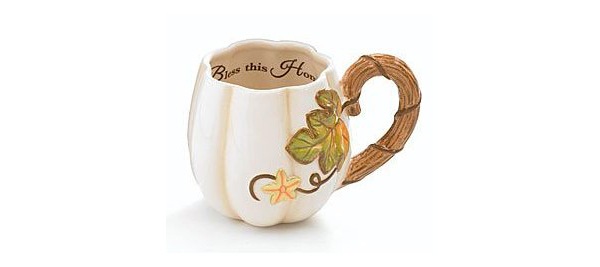 Эта симпатичная кофейная чашка в виде тыквы, украшенная опавшими листьями, станет отличным подарком для предстоящего Дня благодарения.