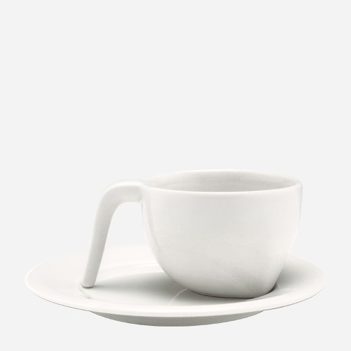 Эта элегантная кофейная чашка создана с необычной формой ручки и блюдца. Ее длинная ручка лежит на блюдце, что придает чашке определенную устойчивость.