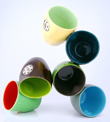 Эта серия чашек имеет одну одинаковую особенность – 3 металлические кнопки. Вы сможете защелкнуть эти кнопки так, чтобы все чашки были вместе, прикрепить к чашке ручку или даже две.