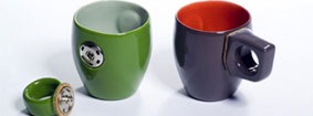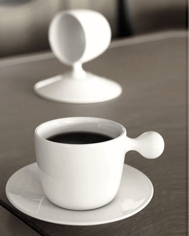 Дизайнеры этой чашки думали не только о ее внешнем виде, но и о том как ее хранить. Они создали специальную форму ручки и держатель с резиновой прослойкой. При помощи ручки, эту чашку можно поместить в резиновый держатель, крепящийся на стене или столе.