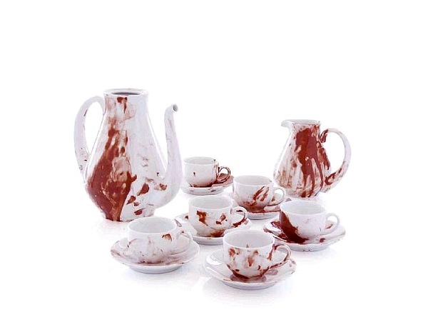 Этот провокационный кофейный набор далеко не всем придется по вкусу. Алые потеки и отпечатки рук далеко не у каждого смогут пробудить желание выпить кофе. Но они безусловно отвечают требованиям креативного дизайна.