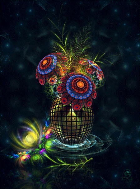 Фрактал – геометрическая фигура созданная из повторяющихся линий, кривых и других геометрических форм. Применяя различные цвета в создании таких работ, художник создает красивейшие примеры фрактального искусства. Так как это направление в искусстве выглядит очень необычно и даже завораживающе, оно стало очень популярным среди цифровых художников.