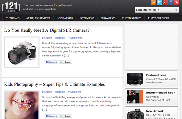 Много уроков по съемке и обработке фото. Все разбито на категории.