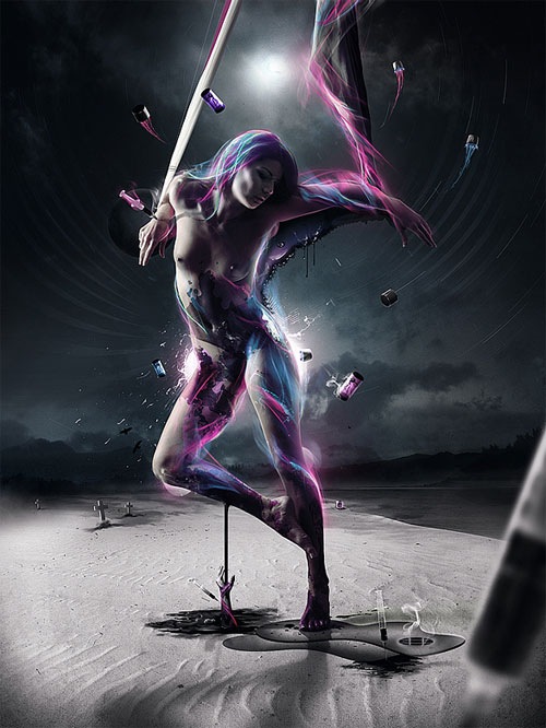 Многие из вас, кто пользуется фотошопом, наверняка пробовали или даже создавали фотоманипуляции. В этой подборке вы увидите 40 примеров такого дизайна. Все они абсолютно разные, но объединяет их то, что внимание на них сфокусировано на человеке, вокруг которого сосредоточено множество элементов, как-будто сливающимися в одно целое. В таком дизайне можно использовать все что душе угодно. Тут вы увидите различие стилей, элементы дыма, брызг, блеска, графики, шрифтов и иллюстраций.