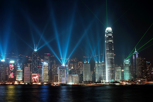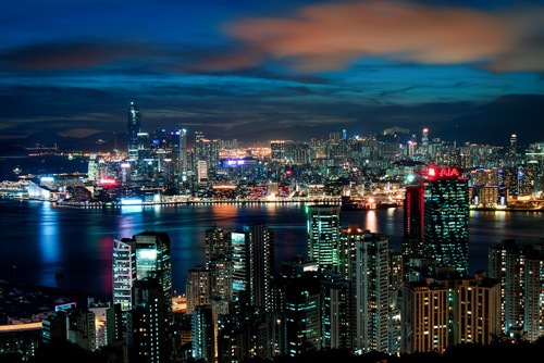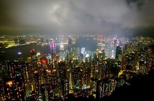 Ночной вид светящегося Гонк Конга с пика Виктория от QT Luong