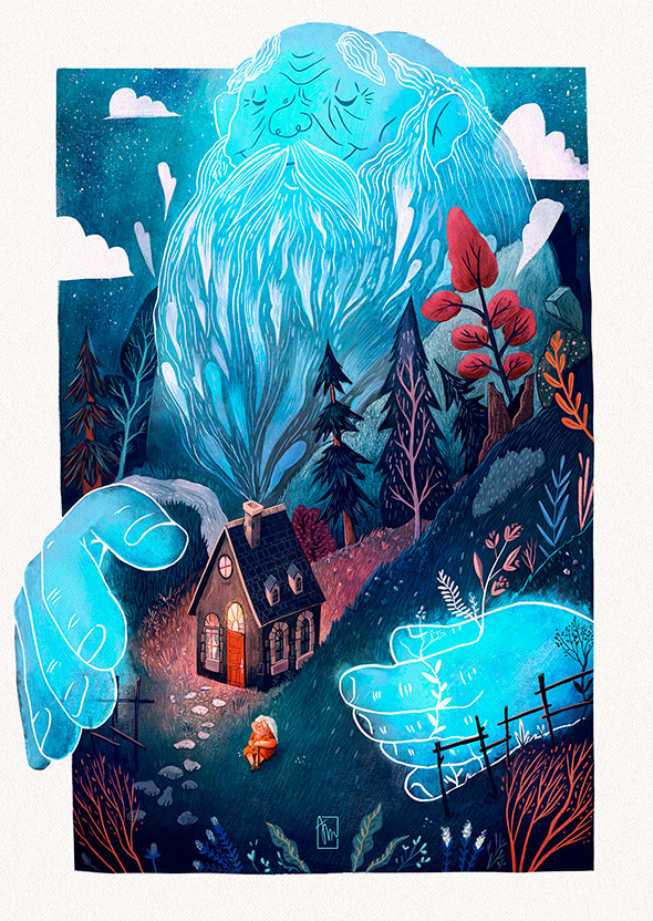 Сегодня знакомимся с иллюстратором из Франции по имени Adrien Mangournet. Его работы привлекают внимание приятной сказочностью. Атмосфера этих работ теплая, приятная и светлая. Даже если это иллюстрация о дожде.