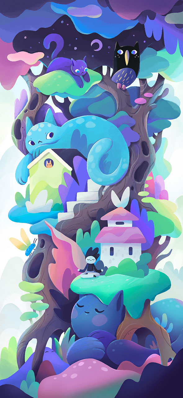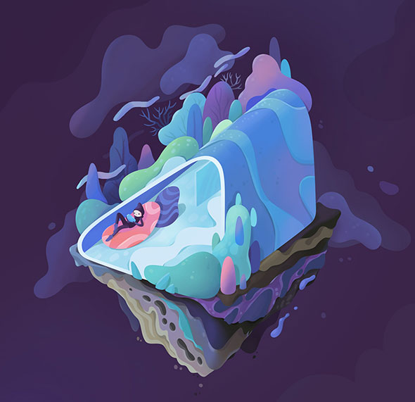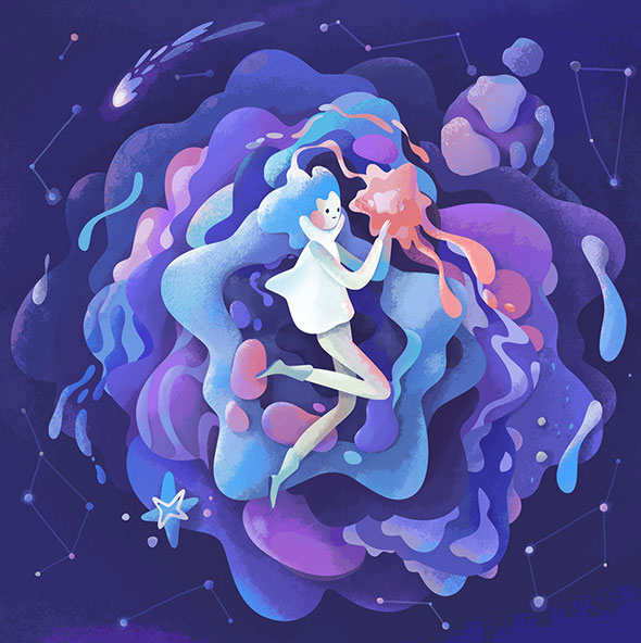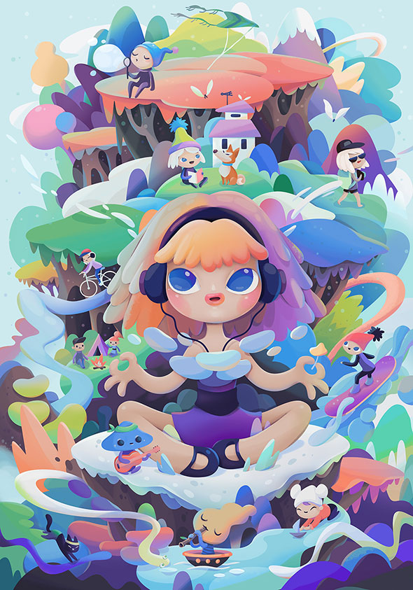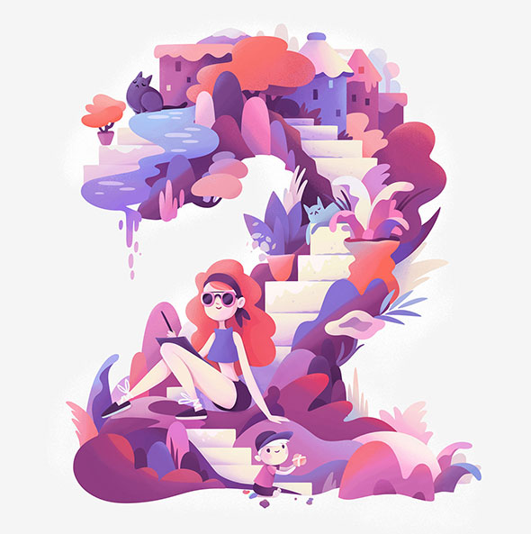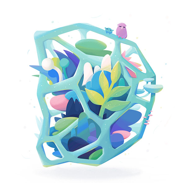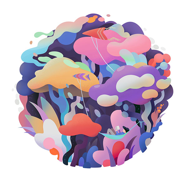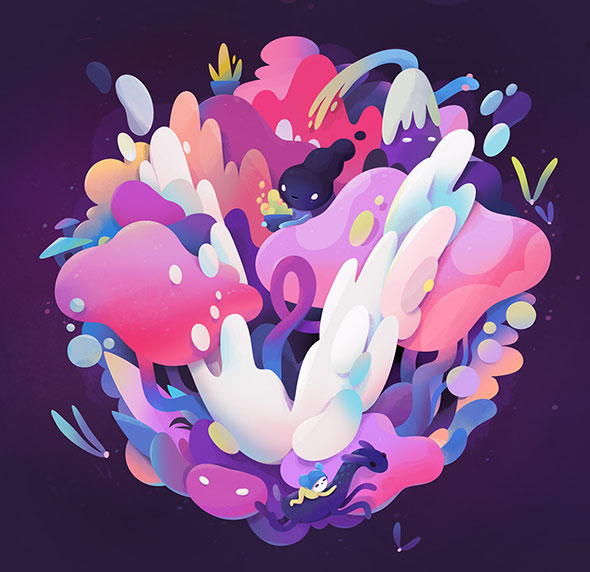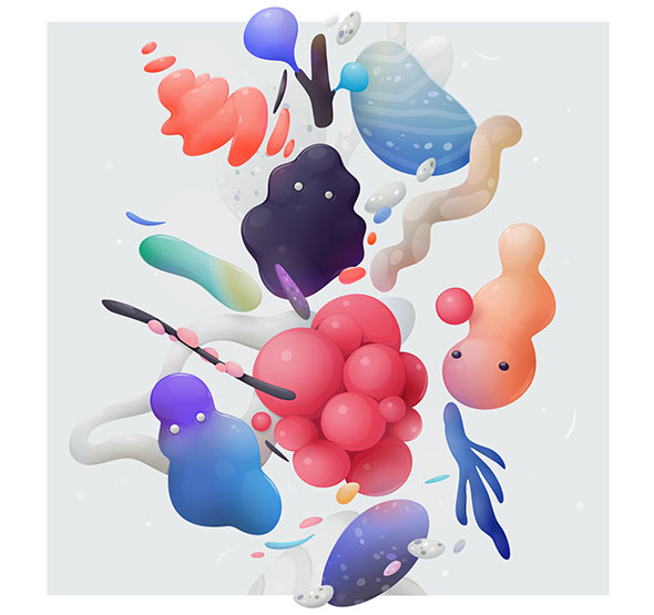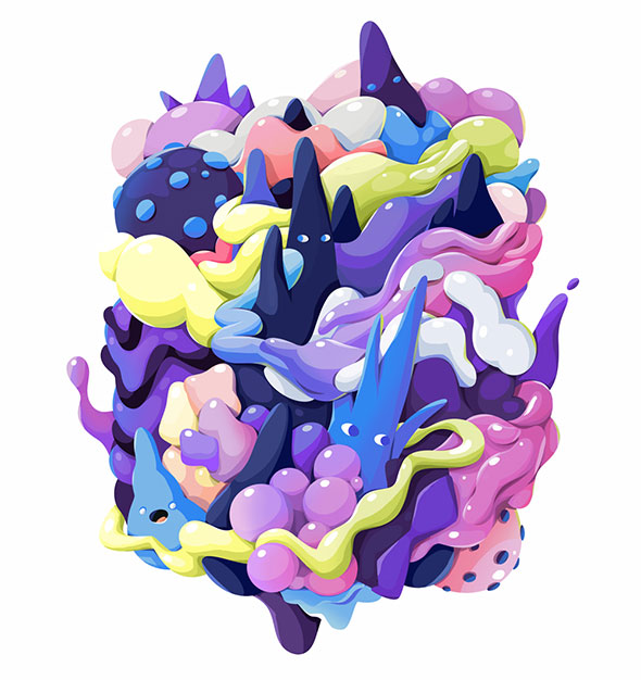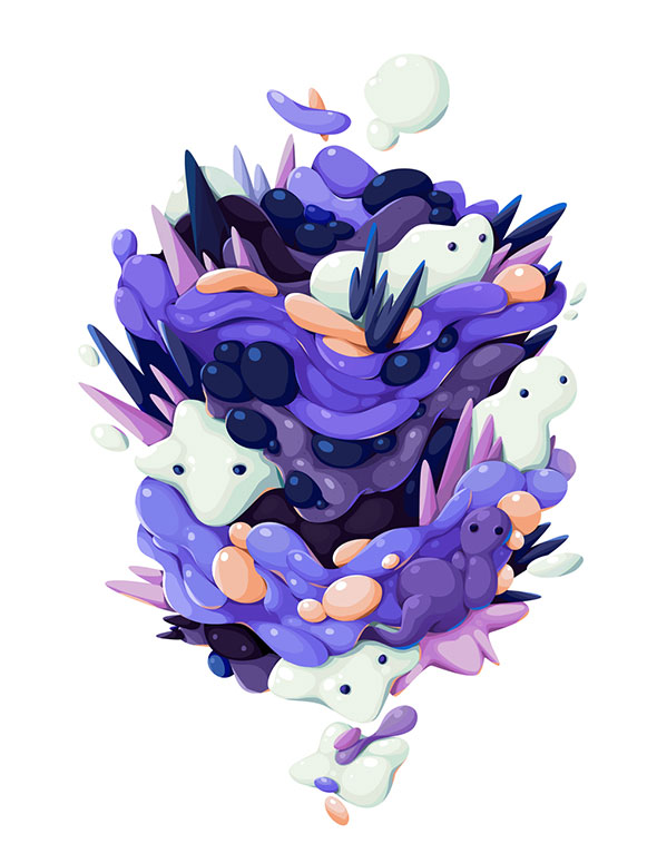 Героиня нашей сегодняшней публикации живет в России. Зовут ее Александра, а занимается она иллюстрацией, дизайном персонажей и дизайном. Ее стиль привлек наше внимание благодаря своим плавным формам, перетекающим, и создающим композицию. Множество абстрактных форм стекаются воедино, чтобы образовать вполне конкретный образ.