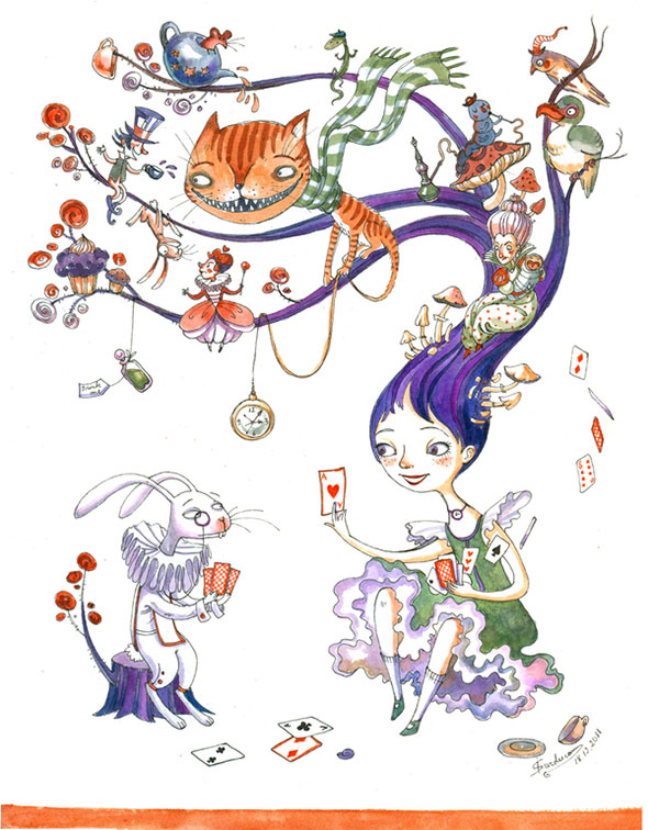 Художественные произведения нередко становятся источником вдохновения для иллюстраторов. Особое место в этом вопросе занимают сказки. Не вдохновиться фантазиями Льюиса Кэрролла о приключениях девочки Алисы сложно. Особенно если перечитываешь сказку в уже зрелом возрасте, открывая новый смысл произведения и воображая новые образы. Сегодняшняя подборка посвящена иллюстрациям, созданным по мотивам «Алисы в Стране Чудес».