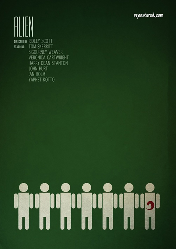 Создание альтернативных постеров к фильмам уже давно превратилось в отдельный жанр, в котором работает множество талантливых дизайнеров. Сегодня мы собрали удачные примеры альтернативных постеров к фильмам в жанре фантастики. В этом материале вы увидите как могли бы выглядеть афиши к фильмам «Чужой», «Хищник», «Тихоокеанский рубеж», «Годзилла» и «Гравитация».