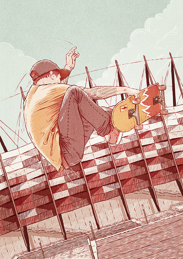 Bartosz Kosowski — польский иллюстратор, который выбрал своеобразный стиль и цветовую гамму, и старается ее держаться. Основное занятие иллюстратора — создание изображений для журналов, книг и постеров. Он сотрудничал с журналами «The New Yorker», «The New Republic», «The Hollywood Reporter», «Smithsonian», «11 Freunde», «Apent Rom», “Gazeta Wyborcza” и “Newsweek”. Сегодня и мы познакомимся с его творчеством.