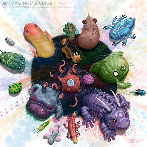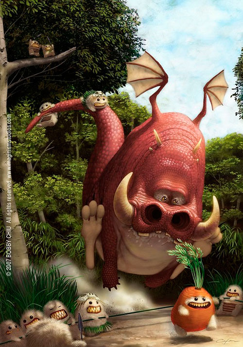 Bobby Chiu это иллюстратор и основатель студии Imaginism. Он известен созданием фантастических и странных существ. Бобби работал над фильмами для Disney, Warner Bros., Dreamworks, Sony, Universal Studios и известен прежде всего разработкой персонажей для Тима Бартона в фильме «Алиса в Стране чудес». Давайте посмотрим на несколько его работ. Надеемся, вам понравятся иллюстрации и вы будете вдохновлены на создание собственных произведений искусства.
