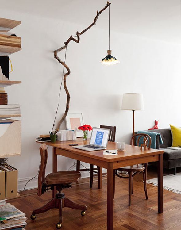 Когда за окном холодно, так хочется тепла и уюта. Что может согреть лучше, чем дерево в интерьере. Однако наша сегодняшняя подборка посвящена не математически выверенным срезам в мебели, а настоящему буйству фантазии природы. Ниже вы увидите как можно творчески подойти к обычным веткам, которые становятся настоящими произведениями искусства.