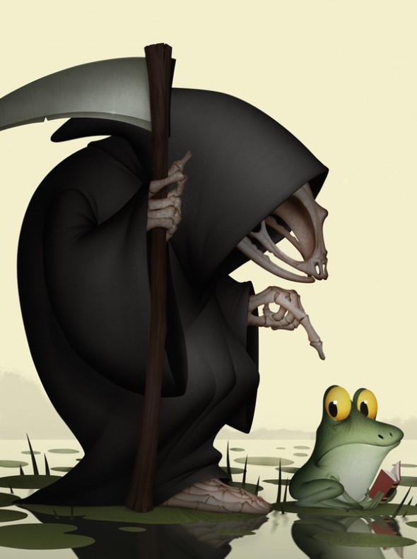 Лягушки, вообще, атас. Та за которой смерть пришла скорее всего какает, т.к. у нее книжка и глаза выпучены. Мультикилл комаров тоже норм)