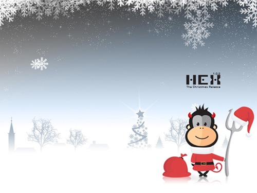 От Vickson (никнейм) заставки на рабочий стол под названием HeX’s Christmas. В разрешениях 800×600, 1280×768, 1280×800 и 1280×1024.