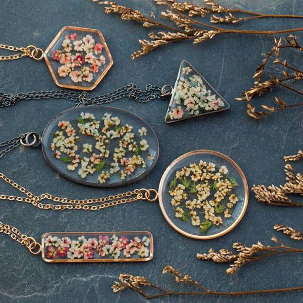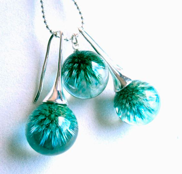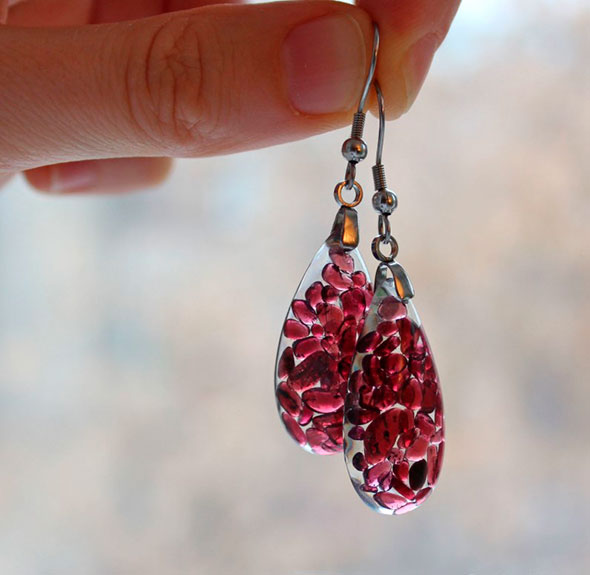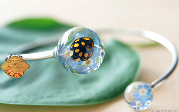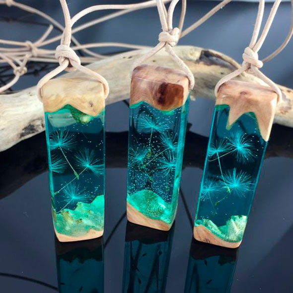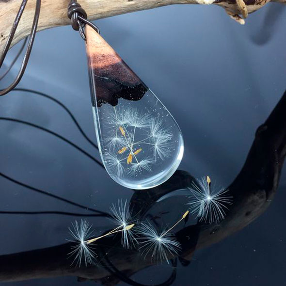 Ювелирная смола используется создателями авторской бижутерии повсеместно. Ее особенность в том, что она прозрачная (если ее не подкрашивать), жидкая (то есть может принять любую форму) и застывает на воздухе. В итоге у талантливых мастеров получаются действительно волшебные вещи, которыми мы будем вдохновляться сегодня.