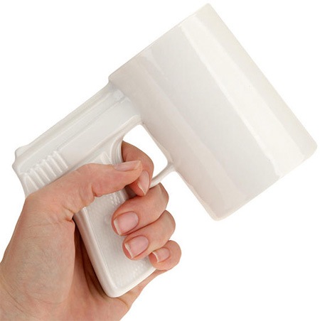 Уникальная и необычная чашка с керамической ручкой в виде пистолета.