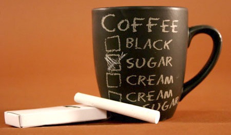 При помощи мела, вы можете делать отметки желаемых ингредиентов в вашем кофе.