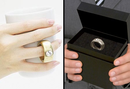 Стильная и необычная кружка с ручкой в виде кольца с бриллиантом.
