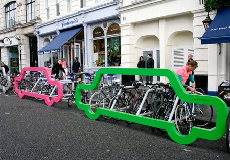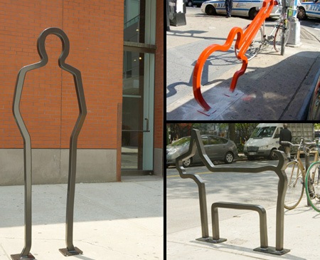 Необычные стойки для велосипедов, выполненные в виде форм людей, предметов или животных. Разработка дизайна Дэвид Бурне, Нью-Йорк.
