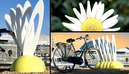 Красивейшая стойка для велосипедов, сделанная в форме ромашки. Очень красиво и природно.