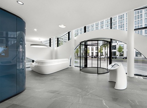Современный и элегантный дизайн офиса нового технологического центра медицинских наук, расположенного в Берлине. В его дизайне используется множество футуристических элементов. В офисе используются только светлые тона, что придает ему вид футуристического светлого замка.