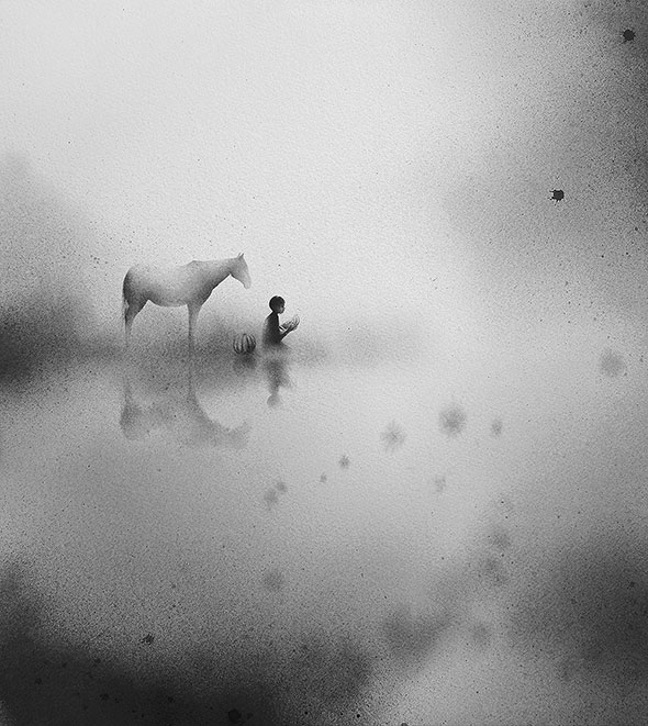 Работы художницы из Индонезии по имени Elicia Edijanto не хочется комментировать. Это тот случай, когда плохо в них только то, что рисовал не ты. Черно-белая акварель выглядит как туман ранним утром, из которого выплывают волшебные образы природы.