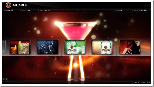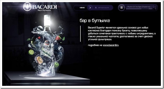 А вот этот сайт Бакарди не так давно появился в просторах Рунета. Все кто пользуеться мейл.ру навеняка видели его на рекламном банере.