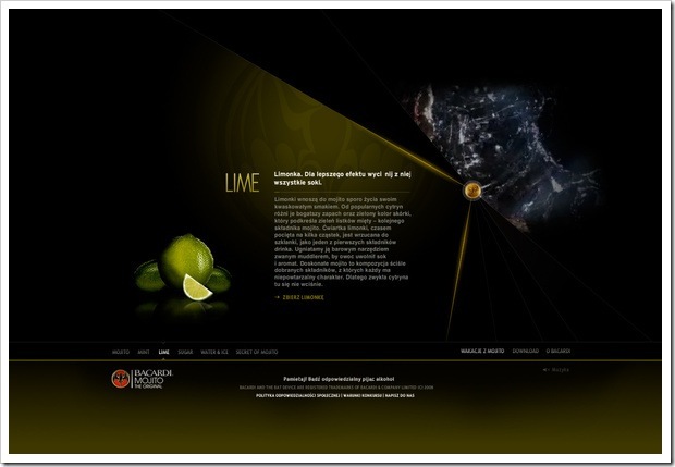 Эти грандиозные художники создали отличный дизан для сайта Бакарди – графика, навигация, все смотрится просто супер!