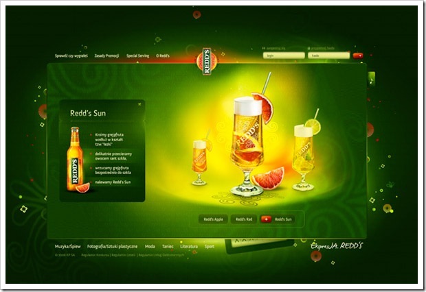 И флеш сайт этой компании. Дзайн с падающии бутылками смотрится просто отлично!