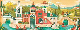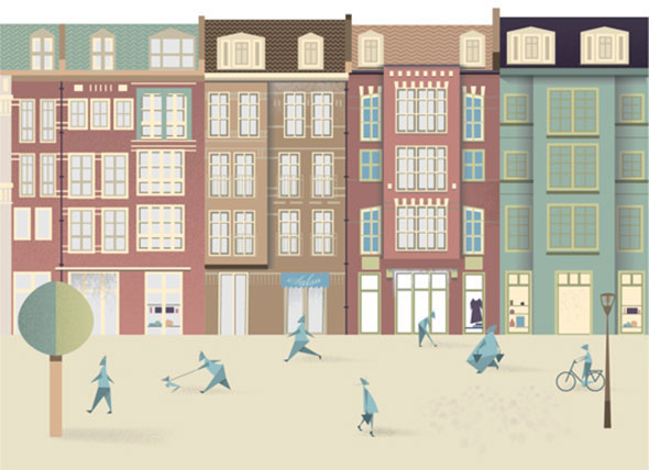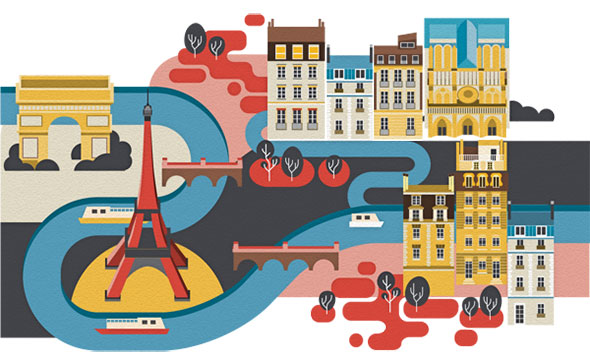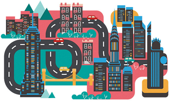 Стиль Flat вышел далеко за пределы веб-дизайна. Сегодня плоские иллюстрации можно увидеть повсеместно. Они очень актуальны и используются как в полиграфическом дизайне, так и в дизайне одежды и пр. Сегодня мы полюбуемся на плоские иллюстрации городов, улиц и домов, которые нередко можно увидеть в современных путеводителях, картах для туристов и конечно в портфолио многочисленных дизайнеров, которые выбрали в качестве своего стиля Flat.