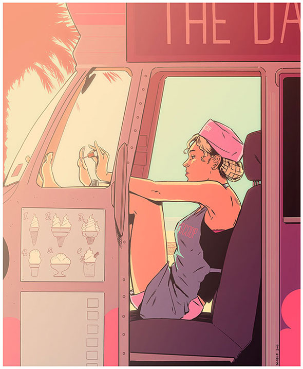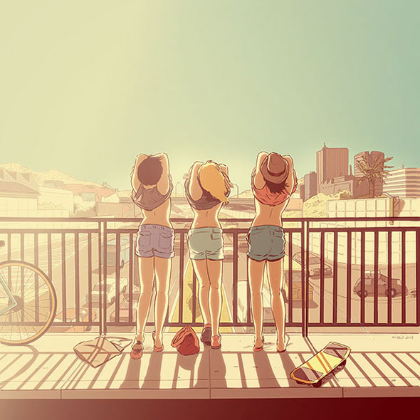 Сегодня мы знакомимся с иллюстратором из Мельбурна по имени Guy Shield. По собственному признанию, рисовать он начал еще в школе, надеясь рано или поздно завоевать своим талантом любовь женщин, так как не силен в спорте. Удался ли план иллюстратора неизвестно, зато работы его стоят внимания. Они полны солнца, тепла и особой атмосферы.