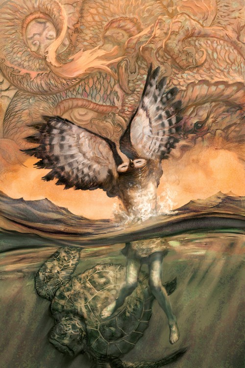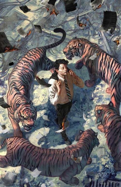 Джон окончил Школу дизайна Род-Айленда в далеком 1989 году, изучал там иллюстрацию, и сейчас преподает в этой престижной школе. Работает он в непривычной для современных иллюстраторов технике. Он пишет свои работы маслом по холсту, а затем сканирует их, чтобы добавить компьютерных эффектов. Его иллюстрации обычно выполнены в темных, приглушенных тонах; частый мотив его работ — борьбы добра со злом, ярость и приключения. К сожалению, на сайте Джона Фостера нет комментариев к иллюстрациям, страница Facebook недавно была пеерсоздана, а мой беглый поиск в веб не дал существенных результатов. Однако и просто посмотреть эти работы очень интересно. Смотрим?
