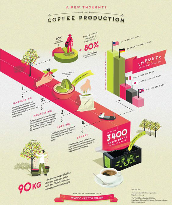Инфографика бывает разной. Несмотря на то, что этот «жанр» графического дизайна появился не так давно, в нем уже можно наблюдать определенные стили и разветвления. Например, красивая иллюстративная инфографика, в которой цифры словно играют второстепенную роль, уступая сцену визуальным образам. Сегодня мы собрали как раз такие примеры!