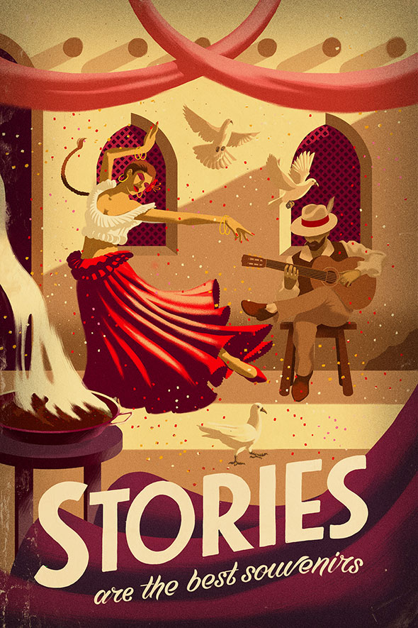 Герой нашей сегодняшней публикации — иллюстратор Джей Гордон, который понравился нам смелостью в выборе палитры. В то время как многие сегодня выбирают модные палые и пастельные тона, или предпочитают более спокойные гаммы, чтобы изображение «не кричало», Джей решает что цвета много не бывает и щедро раздает пылающие оттенки красного, сочные зеленые и синие цвета.