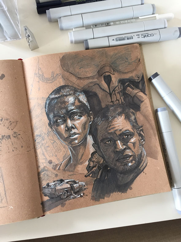 Часто чужое творчество дает толчок для создания новых работ в совсем другой области. Часто роль такого толчка играют особенно удачные фильмы. Сегодня мы как раз вспомним о таком фильме и об иллюстрационных работах, на которые он вдохновил художников и дизайнеров. Речь идет о фильме «Безумный Макс: Дорога ярости».
