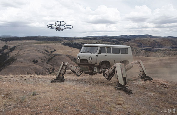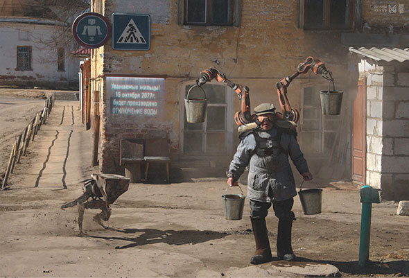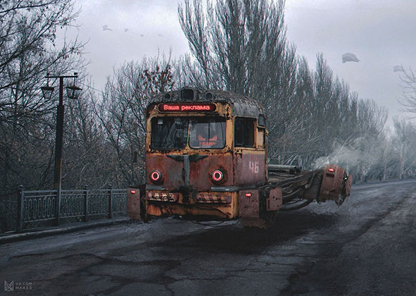 Города будущего и стимпанк — частые темы в дизайне. На Дежурке немало публикаций на эту тему. Но сегодняшний пример вызывает не только восхищение техникой исполнения, но и чувство чего-то до боли знакомого и родного. Если вы в одной из стран СНГ или в СССР, то наверняка испытаете схожие чувства!