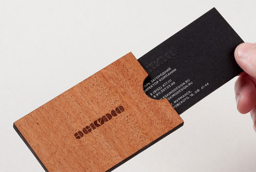 Деревянная визитная карточка с логотипом, выгравированным лазером.