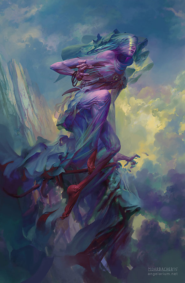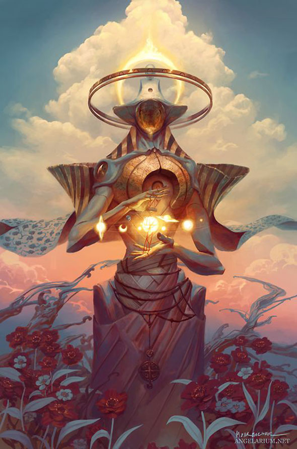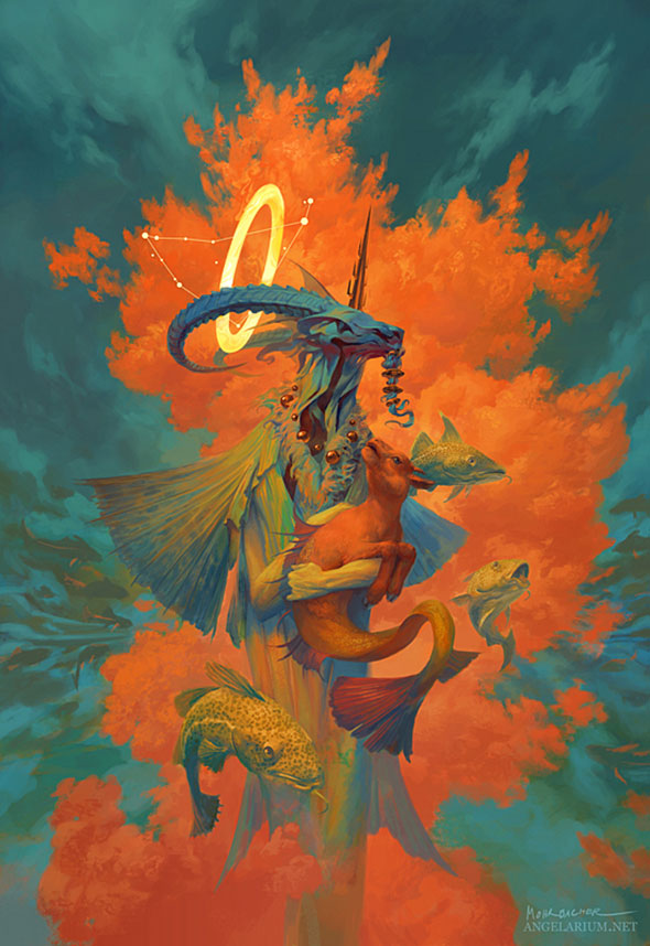 Сегодня знакомимся с работами художника из США по имени Питер Морбахер. Его работы — замечательный пример цифрового искусства. Именно в этом стиле работают в большинстве случаев в растровых программах для рисования. Работы Питера интересны тем, что по сути являются большим каталогом ангелов. У них своя классификация, имена и роли.