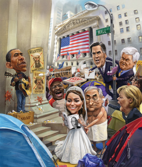 Помимо этого Говард МакУильям регулярно рисует забавные карикатуры на известных культурных деятелей и бизнесменов. Так среди иллюстраций в подборке вы сможете найти карикатуры на Стива Джобса, Элтона Джона, актера Стива Фрая и многих других.