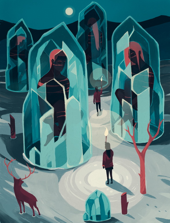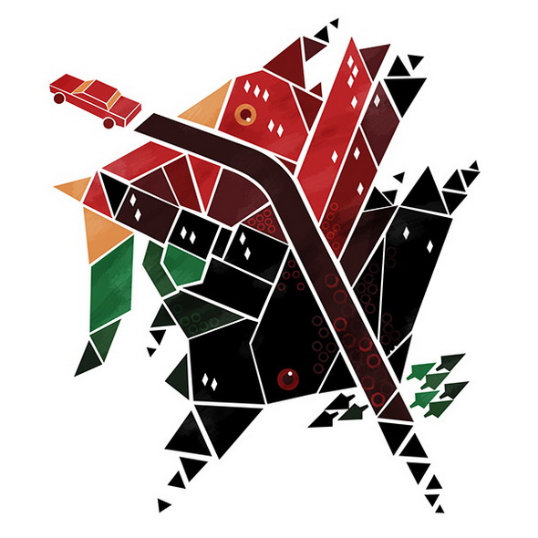 Мы продолжаем искать источники для вашего вдохновения. На этот раз нам приглянулись работы итальянского иллюстратора Reno Nogaj. Простые линии этих рисунков подчеркивают смысловую нагрузку, а геометрия объектов примитивна и не отвлекает от главного. Экспрессивная цветовая гамма, местами отсылающая к цирковым арлекинам, приятна глазу, хотя и не делает иллюстрации веселыми.