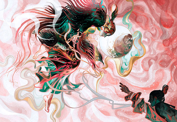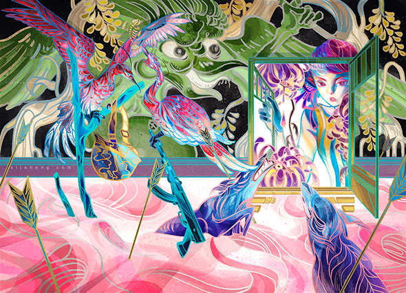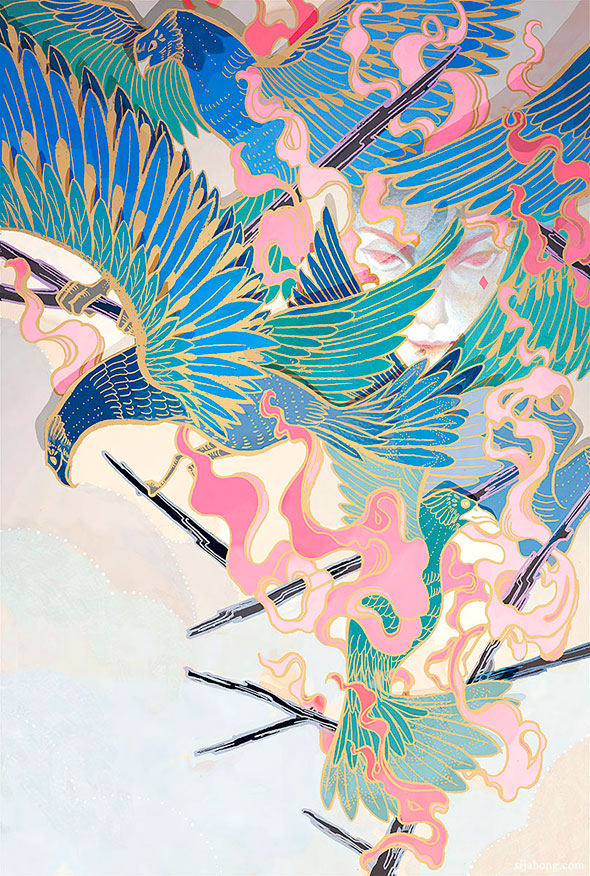 Sija Hong — иллюстратор из Бруклина. Ее работы интересны своим необычным стилем. Образы словно растекаются, расплескиваются за пределы изображения. Также привлекает внимание неожиданный выбор цветов. Сочетания довольно смелые, потому что некоторые оттенки мало кому придет в голову комбинировать. Еще обратите внимание какое настроение создают «меловые» штрихи!