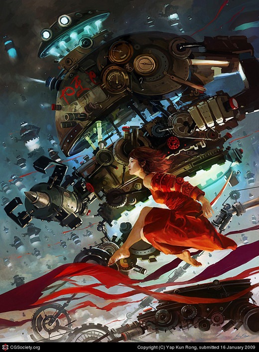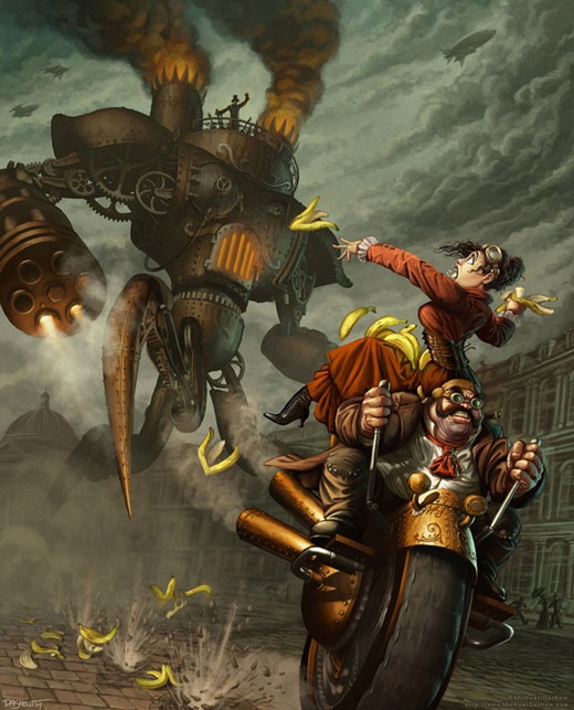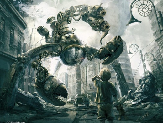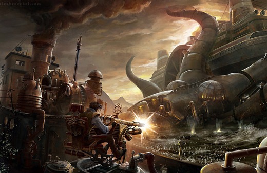 В этой подборке, вы увидите массу работ в жанре научной фантастики. Стимпанк тематика связана с научной фантастикой и теми временами, когда паровые двигатели широко использовались в механике. Это попытка соединения паромоторизованных объектов, современных машин и технологий.