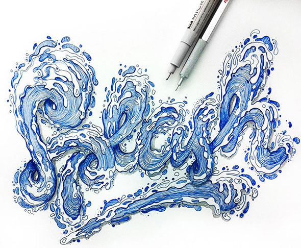 Вода — сильный образ в изобразительном искусстве и дизайне. Конечно эту тему не обошли и в дизайне типографики. Сегодня мы вдохновляемся как раз такими примерами. Волны, круги на воде, подтеки и всяческие вариации на тему текучести перемешиваются с интересными шрифтами и каллиграфией.